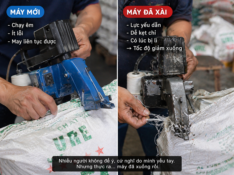 Qua hôm sau đổi bao dày… chưa tới 120 bao là bắt đầu mỏi.